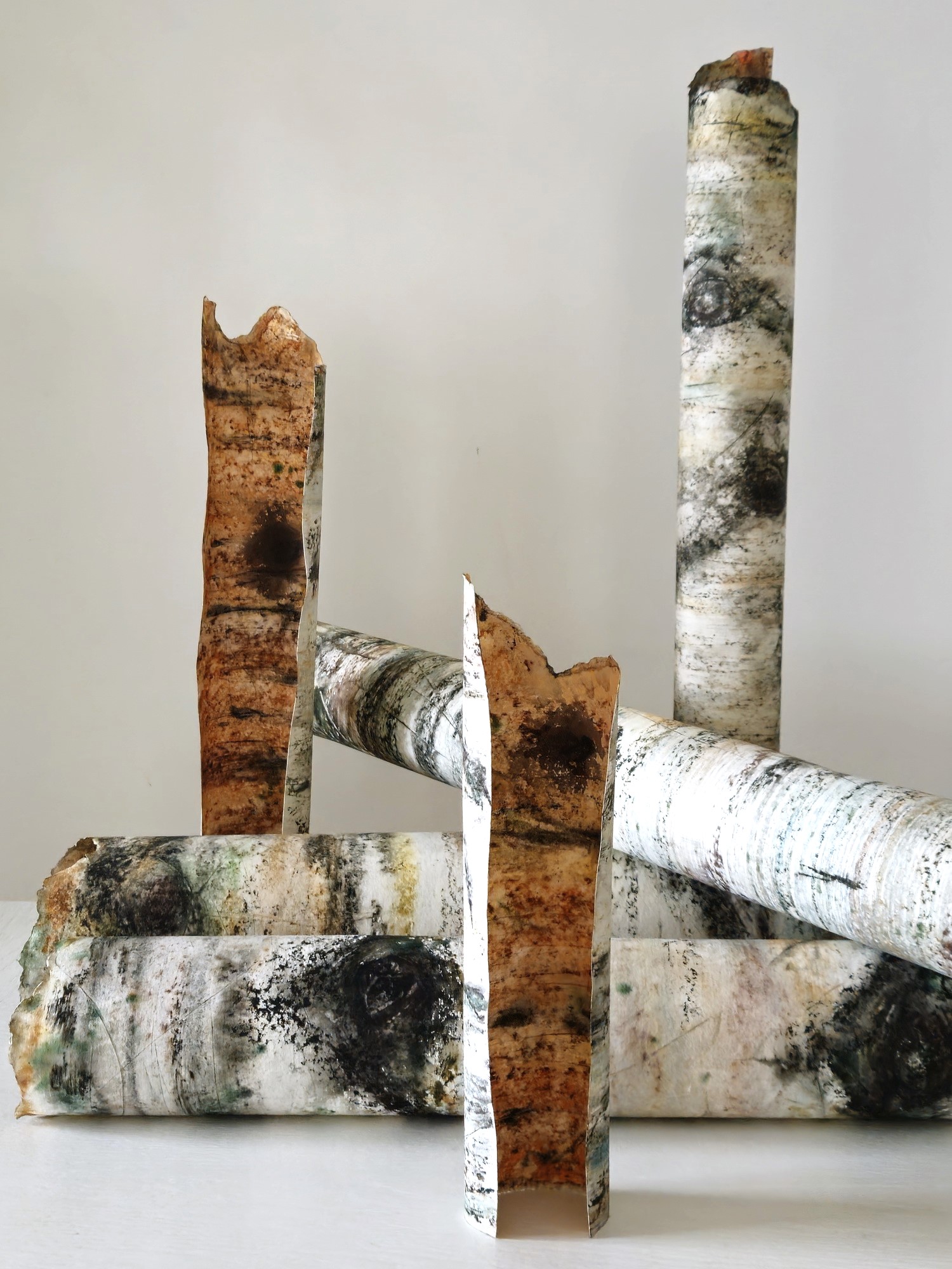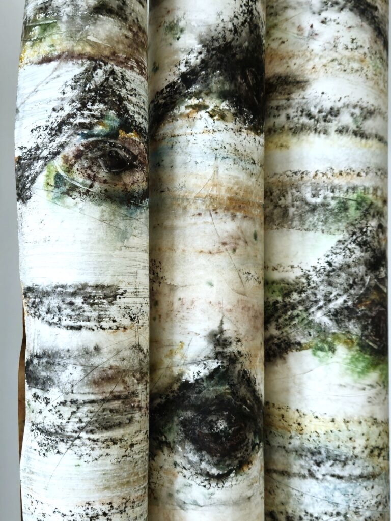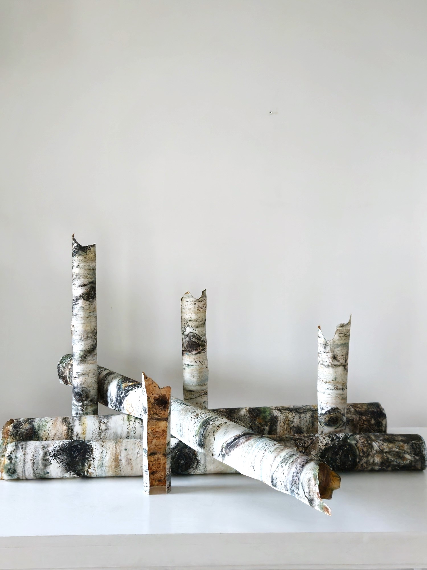 I painted this watercolor series inspired by birch trunks and fragments of bark.