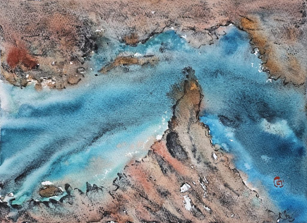 Tecnique: Watercolor, liquid bitumen on Lanaquarelle paper 300g/m, 28×38 cm, 2026.