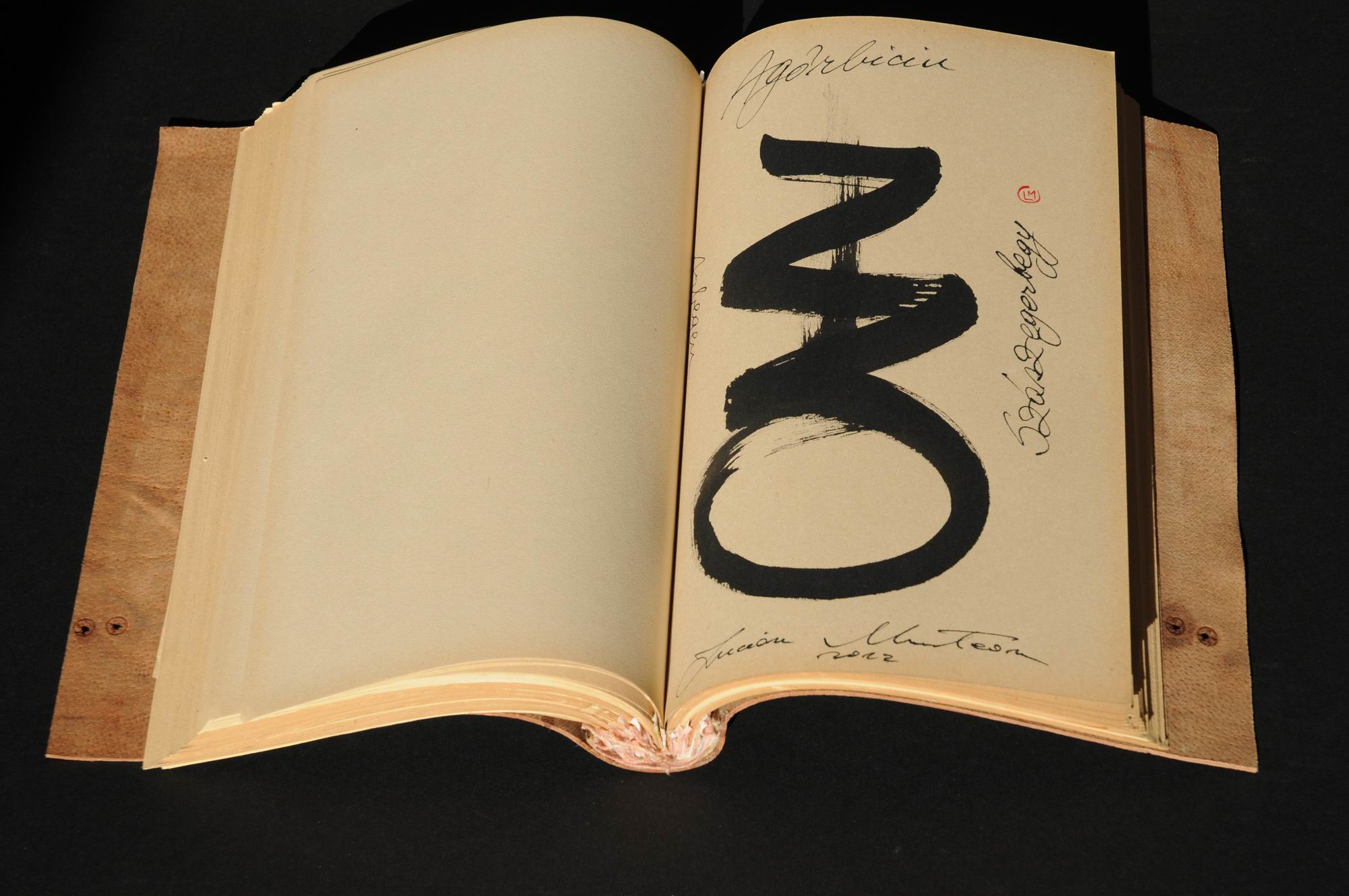 Binding and cover – Răzvan Supuran, Atelierul de carte – MTR, 2012. Japanese binding – body book Coptic binding – cover, letterpress, engraving leather cover material – leather blacksmith’s apron.