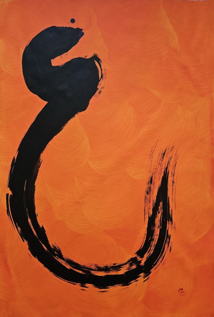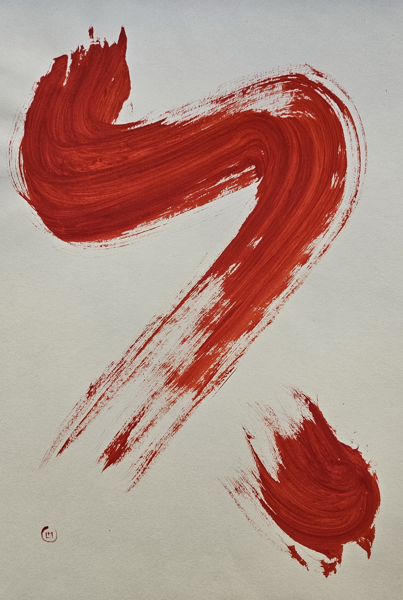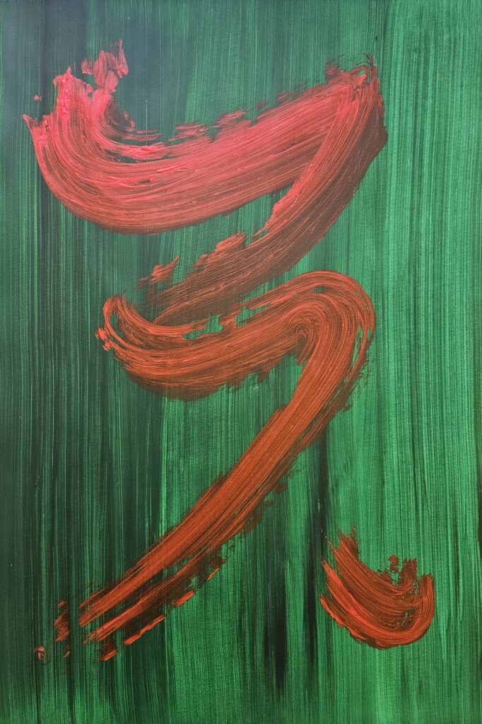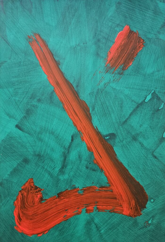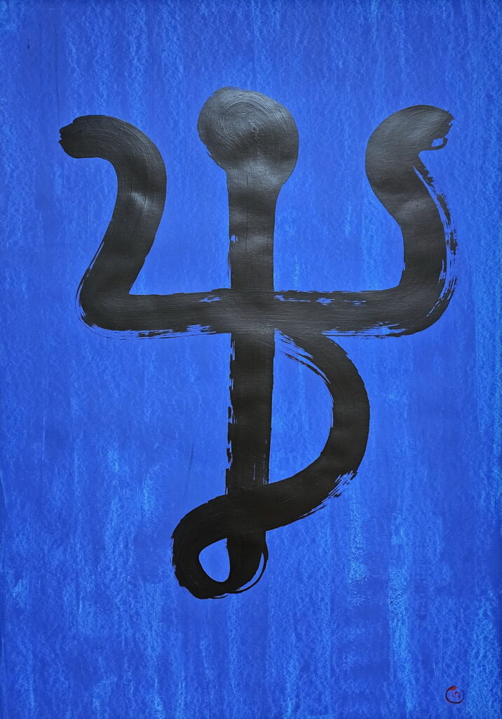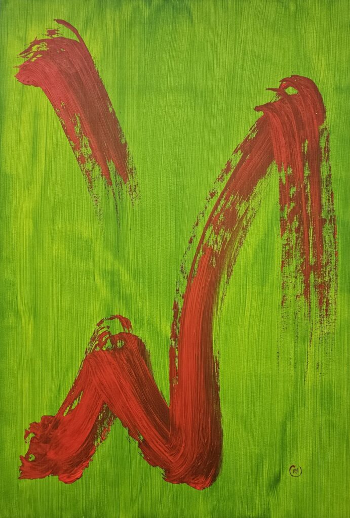 Inspired by these signs and symbols I painted a series of artworks in calligraphic style, acrylic on paper, 50×70 cm, 2020.