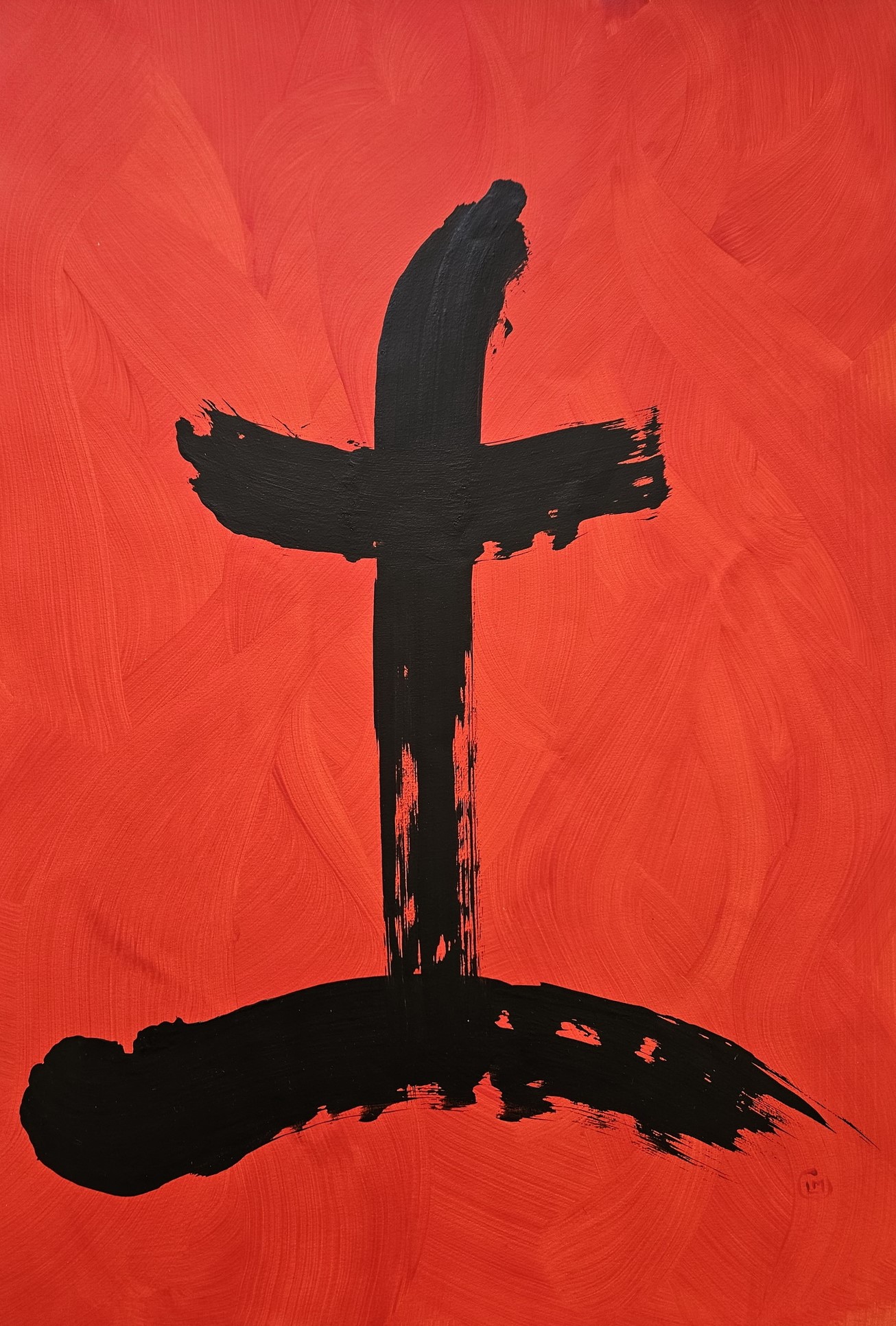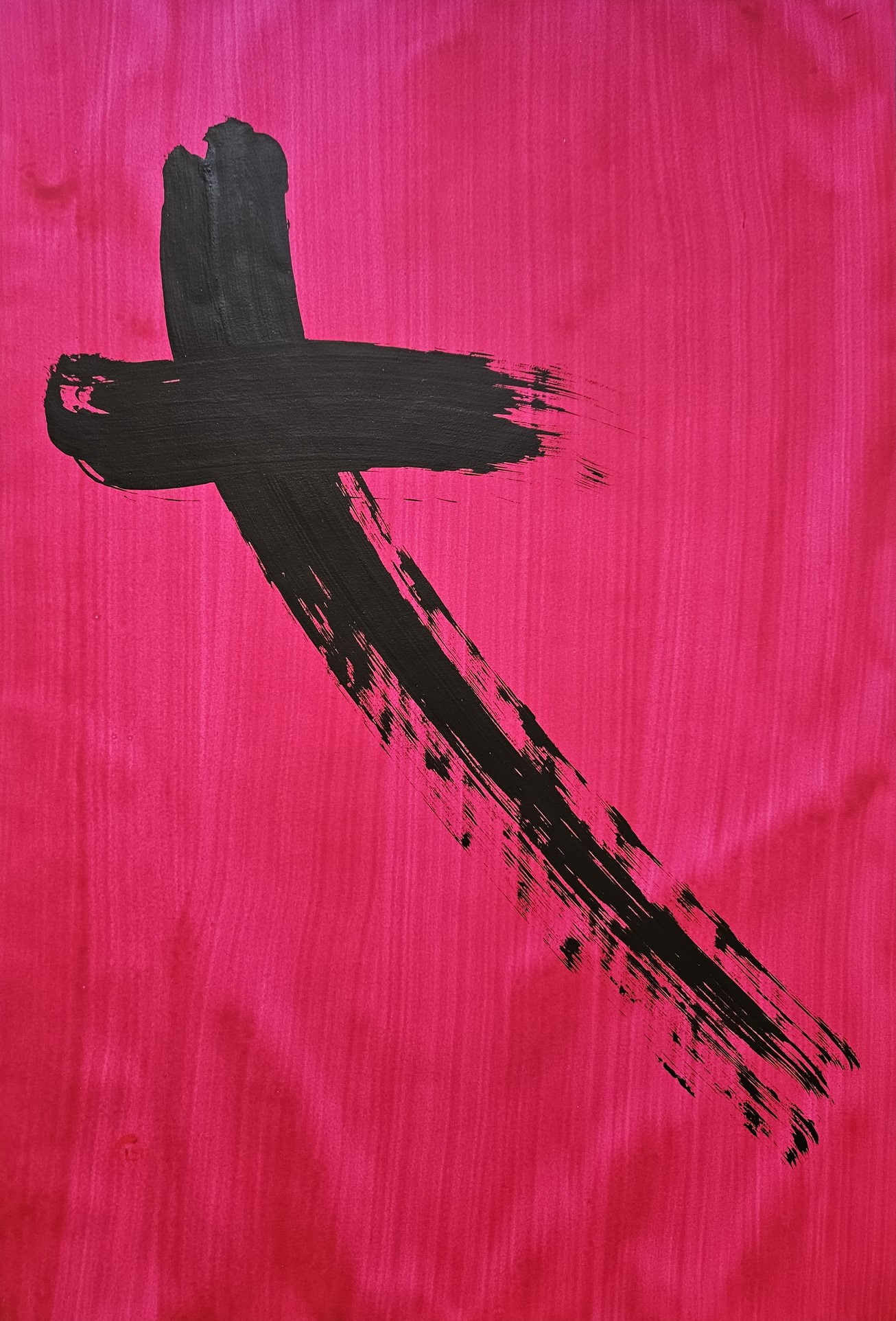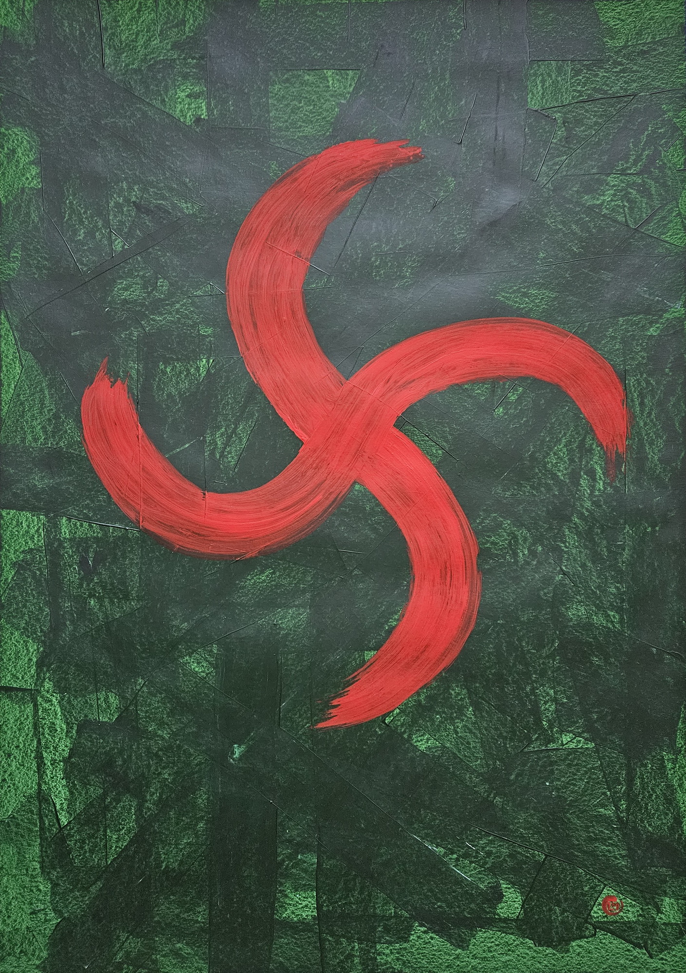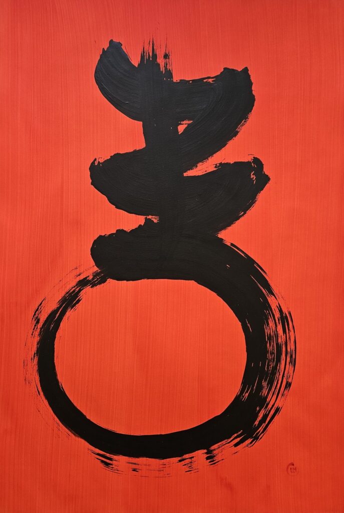 Inspired by these signs and symbols I painted a series of artworks in calligraphic style, acrylic on paper, 50×70 cm, 2020.