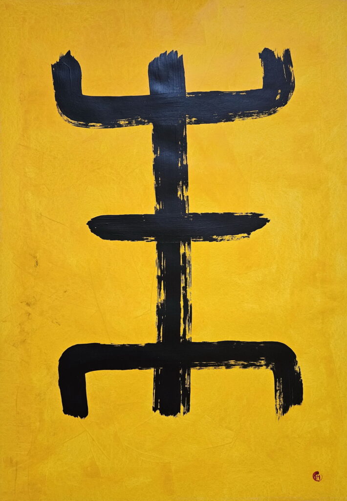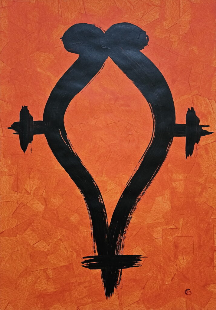 After recent research in 2024 I discovered similarities of these dangale with Mongolian tamga (represented in the first 7 paintings below acrylic on paper, 100×70 cm, 2024)