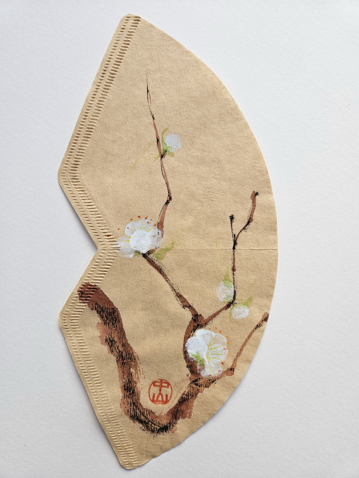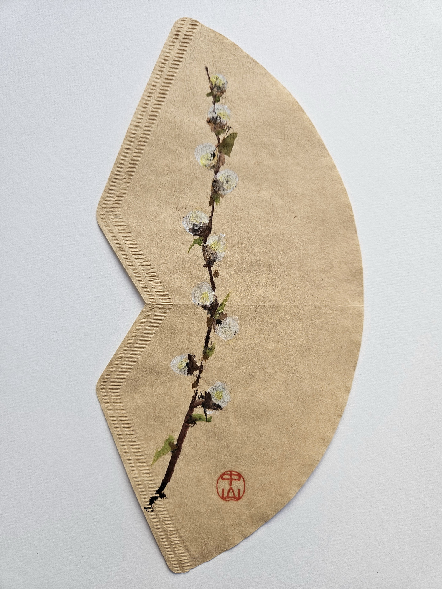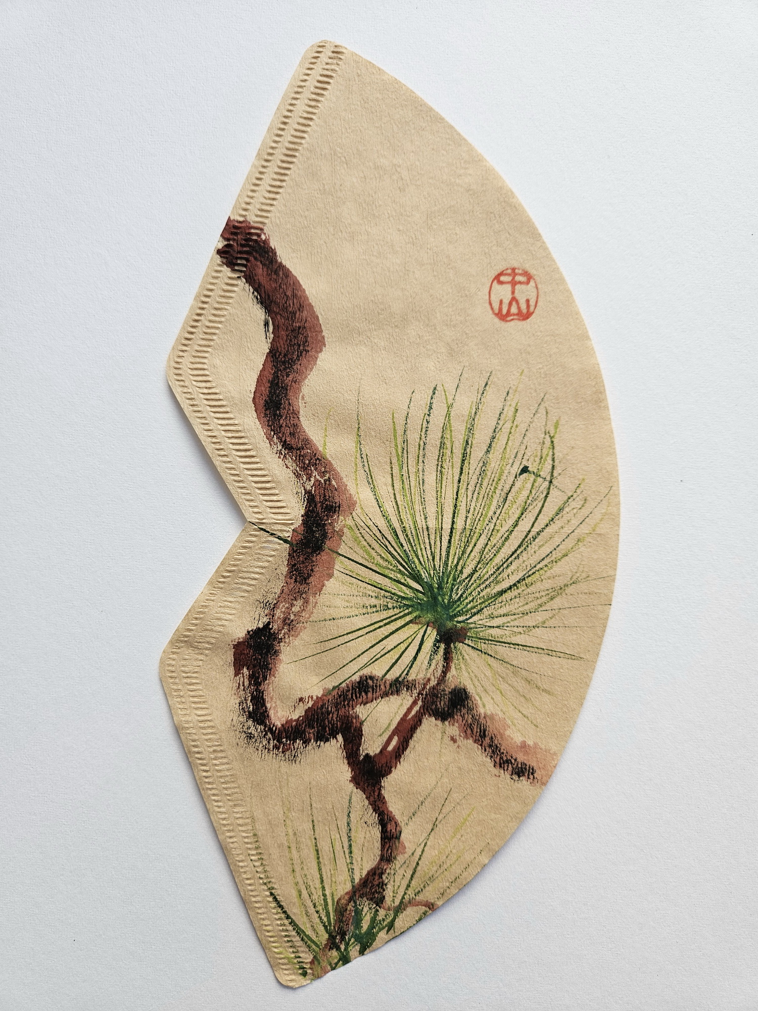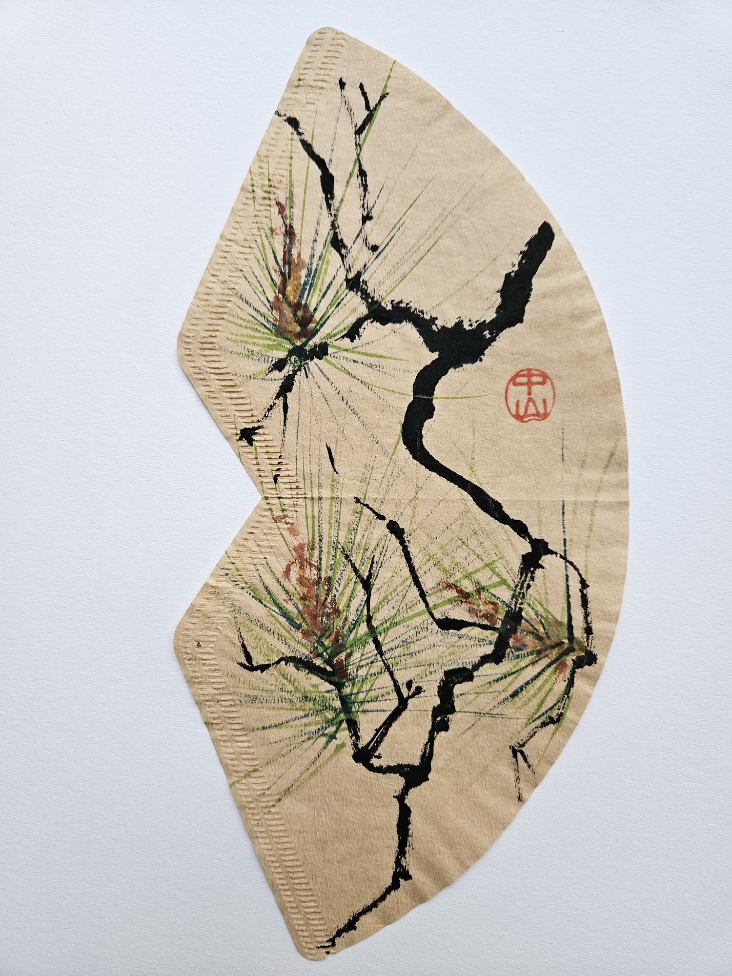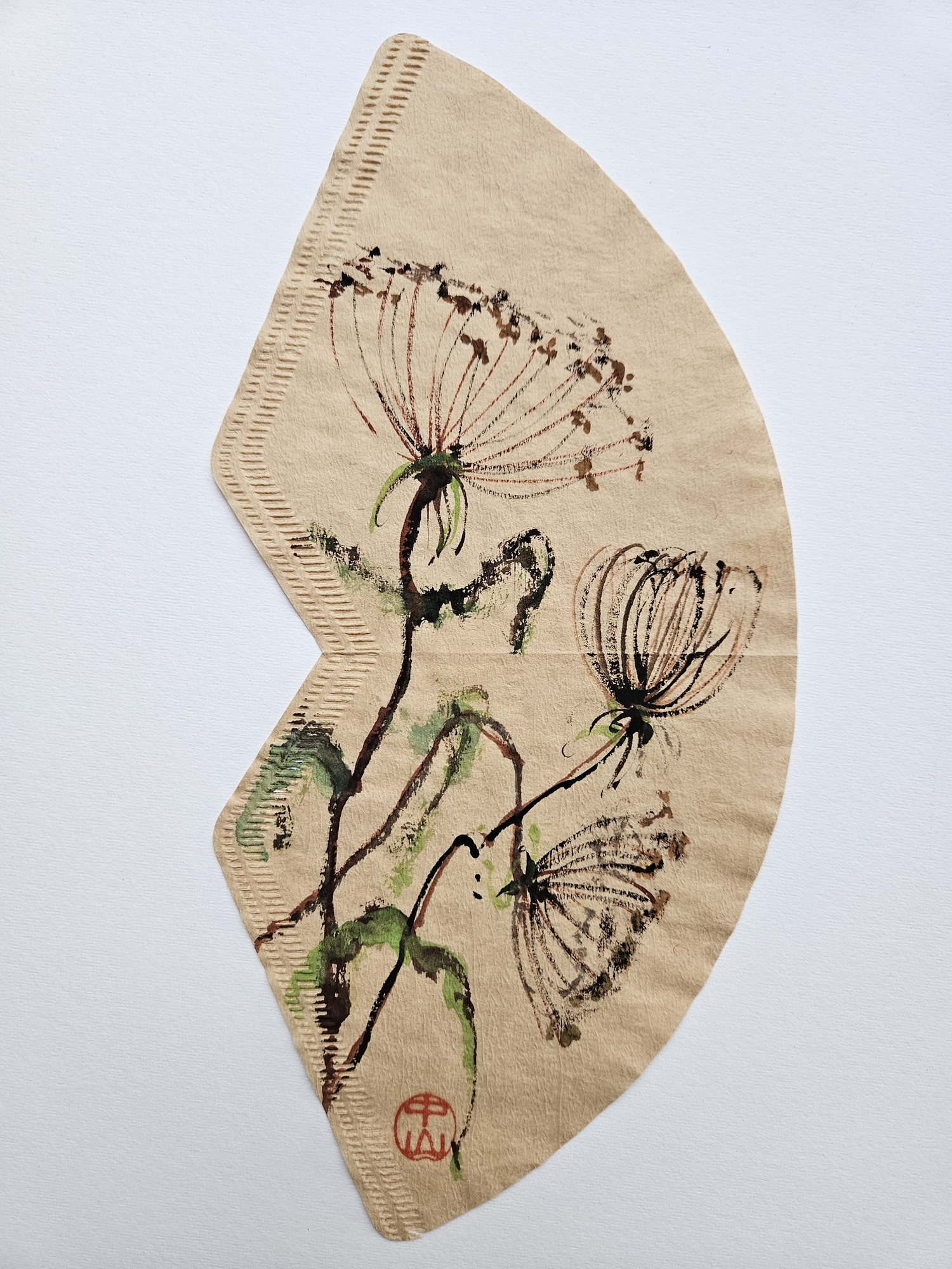 Technical details: Ink and watercolor on coffee filters paper size: 28×14 cm 2025
